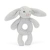 A treat for tiny hands, Bashful Pink Bunny Ring Rattle can be grabbed by its soft paws, long lop ears or ring-shaped tummy. When given a gentle shake it will sound the rattle inside, much to baby’s delight! Crafted in a soft, pink coloured fur made from recycled fibres featuring a Bashful Bunny pink suedette nose and embroidery eyes.