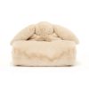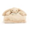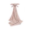 A luxurious newborn gift, the Bashful Luxe Willow Bunny Blankie is exquisitely soft in a latte hued fur. Featuring the head and paws of Willow Bunny in the corner of a silky soft blanket. Rolled and wrapped with a grosgrain ribbon and elegantly presented in a satin sheen gift box with a gold foil detail and matching gift card.